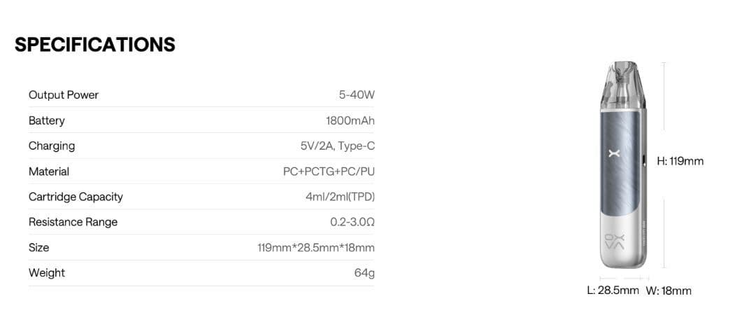 - 1 x OXVA Nexlim 0.8ohm 2ml Pod (Pre-Installed)