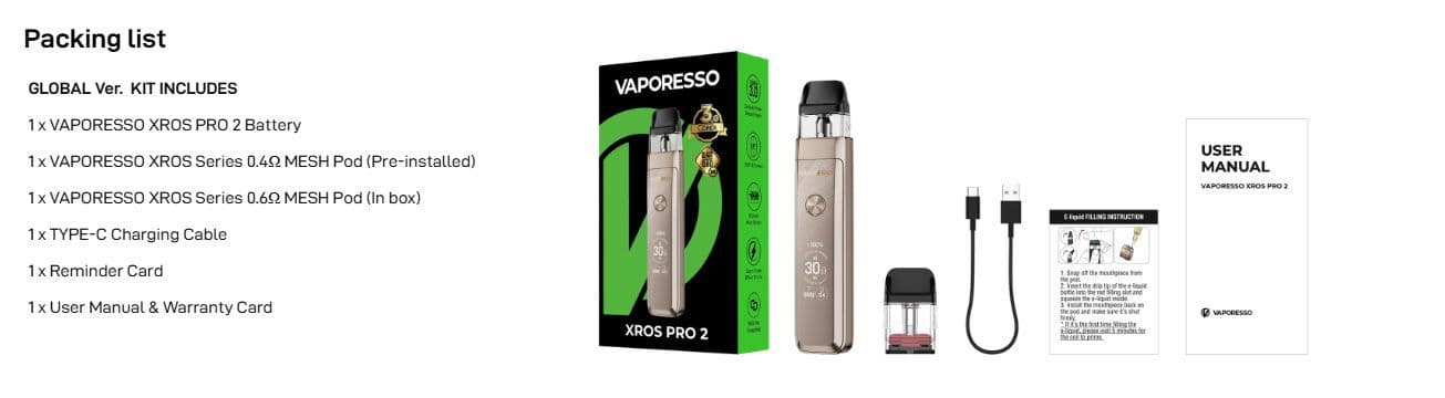 - 1 x Vaporesso XROS 0.4ohm Mesh Pod