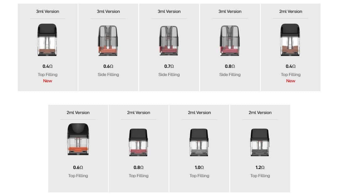 | Pod Resistance | 0.4Ω, 0.6Ω, 0.8Ω 1.0Ω & 1.2Ω |